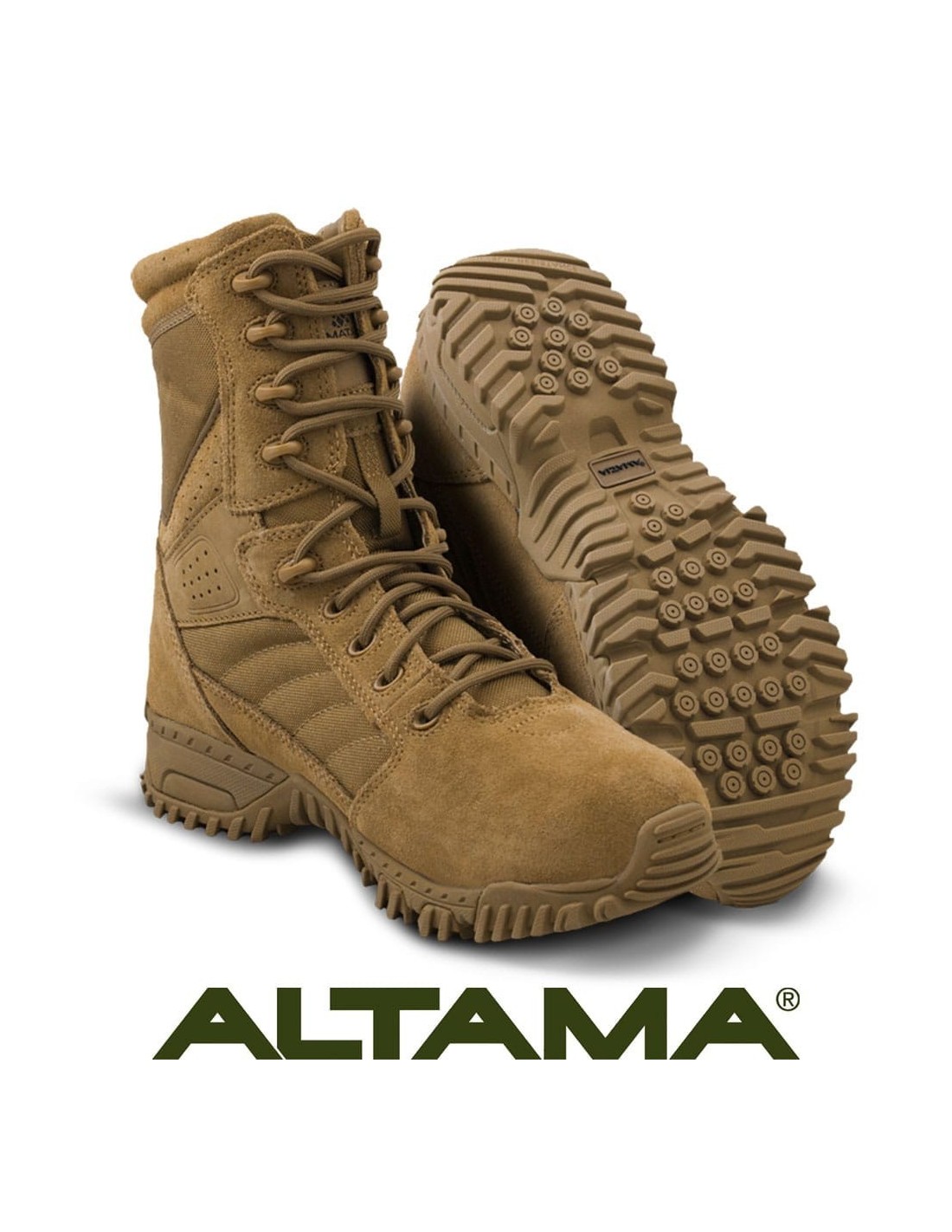 Las Botas Altama Foxhound SR8 son ligeras, transpirables y duraderas, con una suela agresiva para tracción superior. Están hechas de gamuza resistente a manchas y nailon Cordura®, con una lengüeta reforzada y forro antimicrobiano. La plantilla de EVA removible y la entresuela de Phylon ofrecen comodidad y soporte prolongados.
