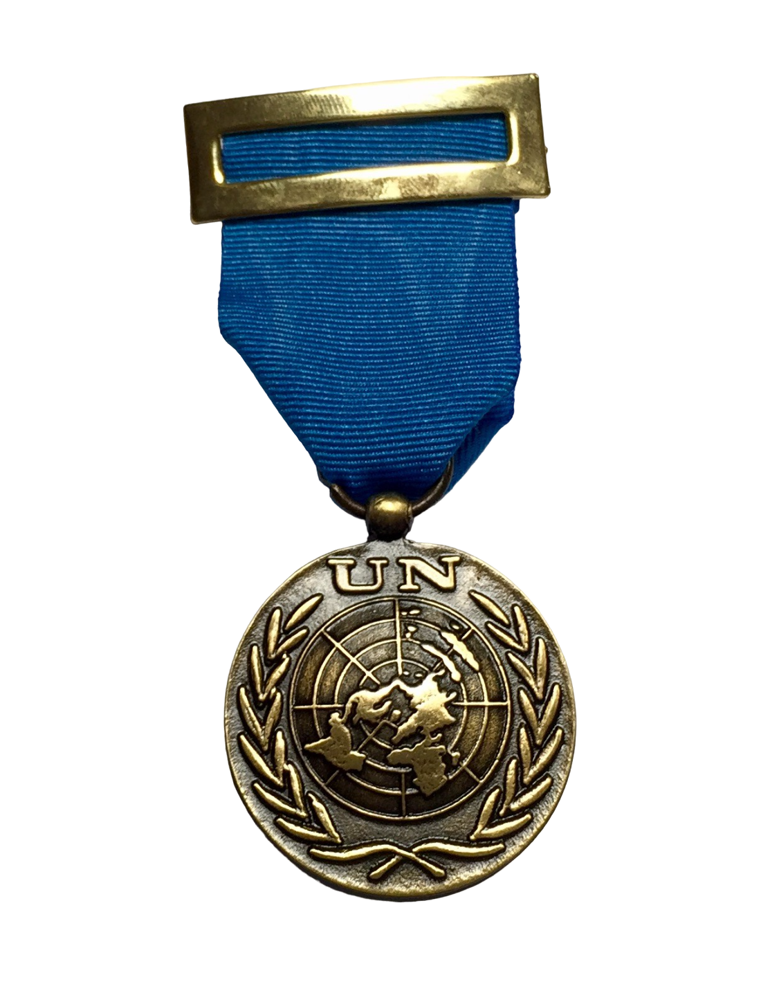 Medalla conmemorativa ONU Servicios Generales. Fabricada en metal de alta calidad y con enganche de aguja.
