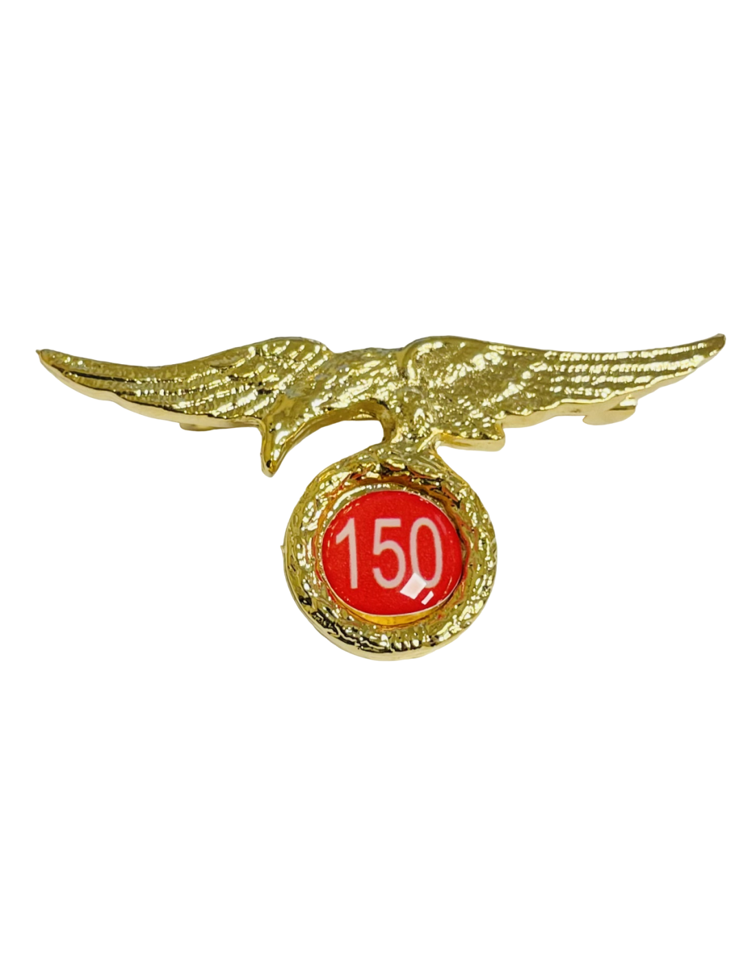 DESCRIPCIÓN. Águila troquelada con las alas extendidas que mira a la derecha, de color plata hasta los cien primeros saltos a partir de los cuales pasará a ser dorada, sujetando entre sus garras una corona de laurel del mismo color que el águila y en su interior una chapa esmaltada que, dependiendo del número de saltos, variará su color. Dentro de ella resaltará el número de saltos en plata.