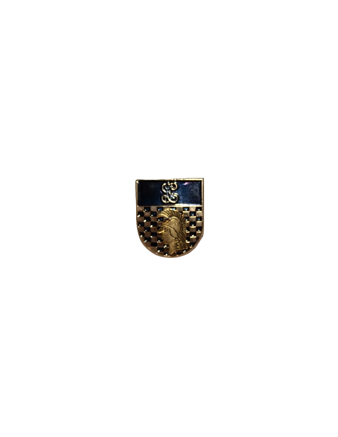 Descripción: Escudo español cuadrilongo de 30 x 25 milímetros fileteado de oro. En campo ajedrezado de blanco y azur con ocho órdenes en horizontal y siete en vertical, una cabeza de la diosa Minerva de perfil en oro mirando hacia el flanco diestro del escudo. El jefe de azur cargado con las letras G y C de oro entrelazadas. 8.2.- Derecho al uso: Personal que haya permanecido destinado, adscrito temporalmente o en comisión de servicio, durante un periodo mínimo de tres años, de forma continuada o en periodos alternos, en Centros de docentes de la Guardia Civil o de Fuerzas Armadas.