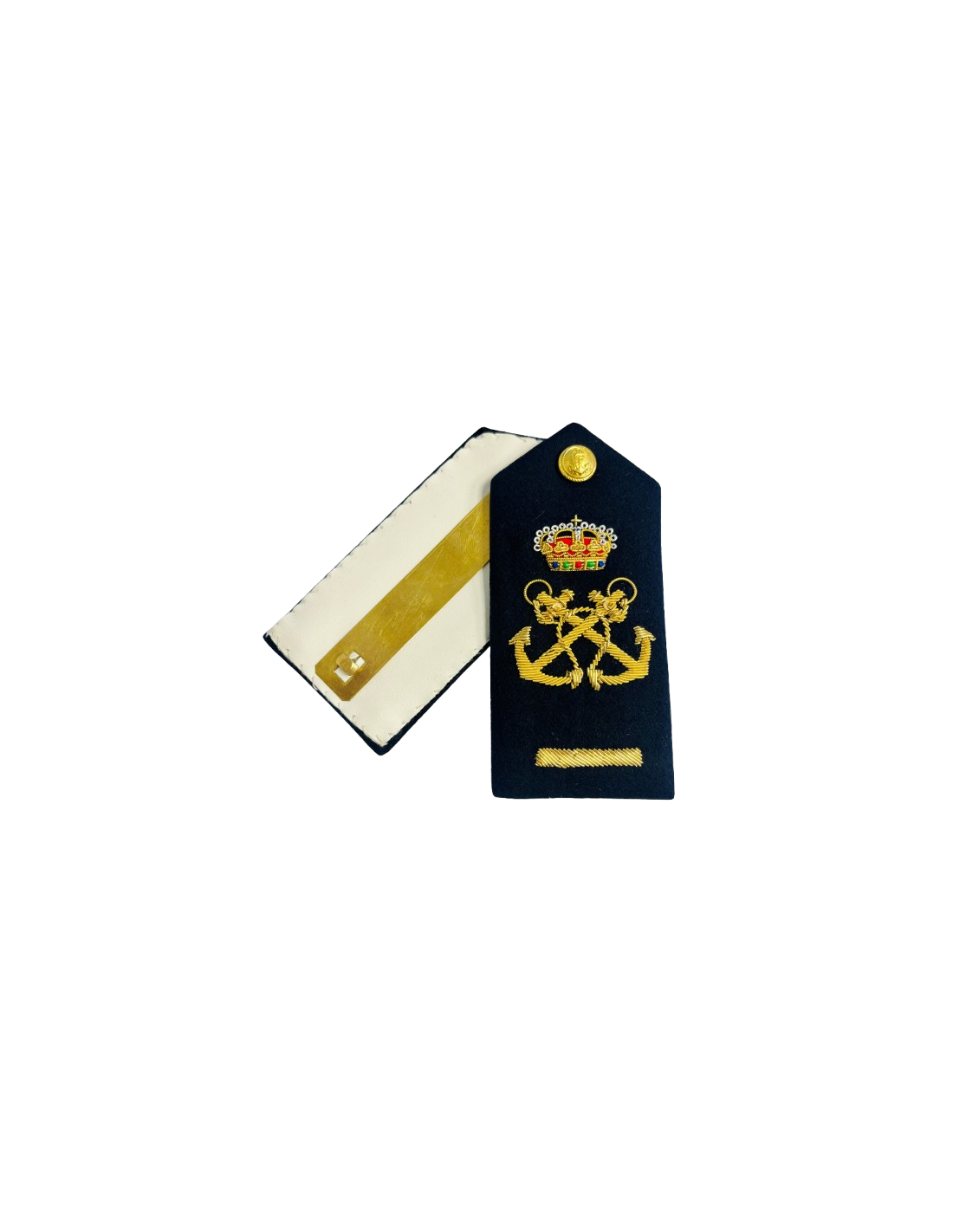 Pala bordada a mano para uniforme de gala de la Armada Española. Modelo para Guardiamarina de 1º. Medidas: 13x6cm. Acabado de alta calidad.