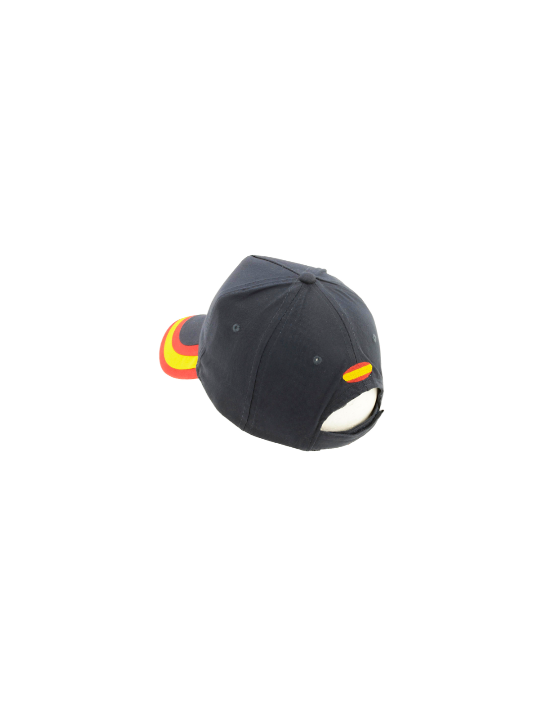 El cierre de velcro ajustable de la parte trasera, presenta un detalle bordado de la bandera de España. Su material 100% algodón peinado permite una transpiración óptima en días calurosos.