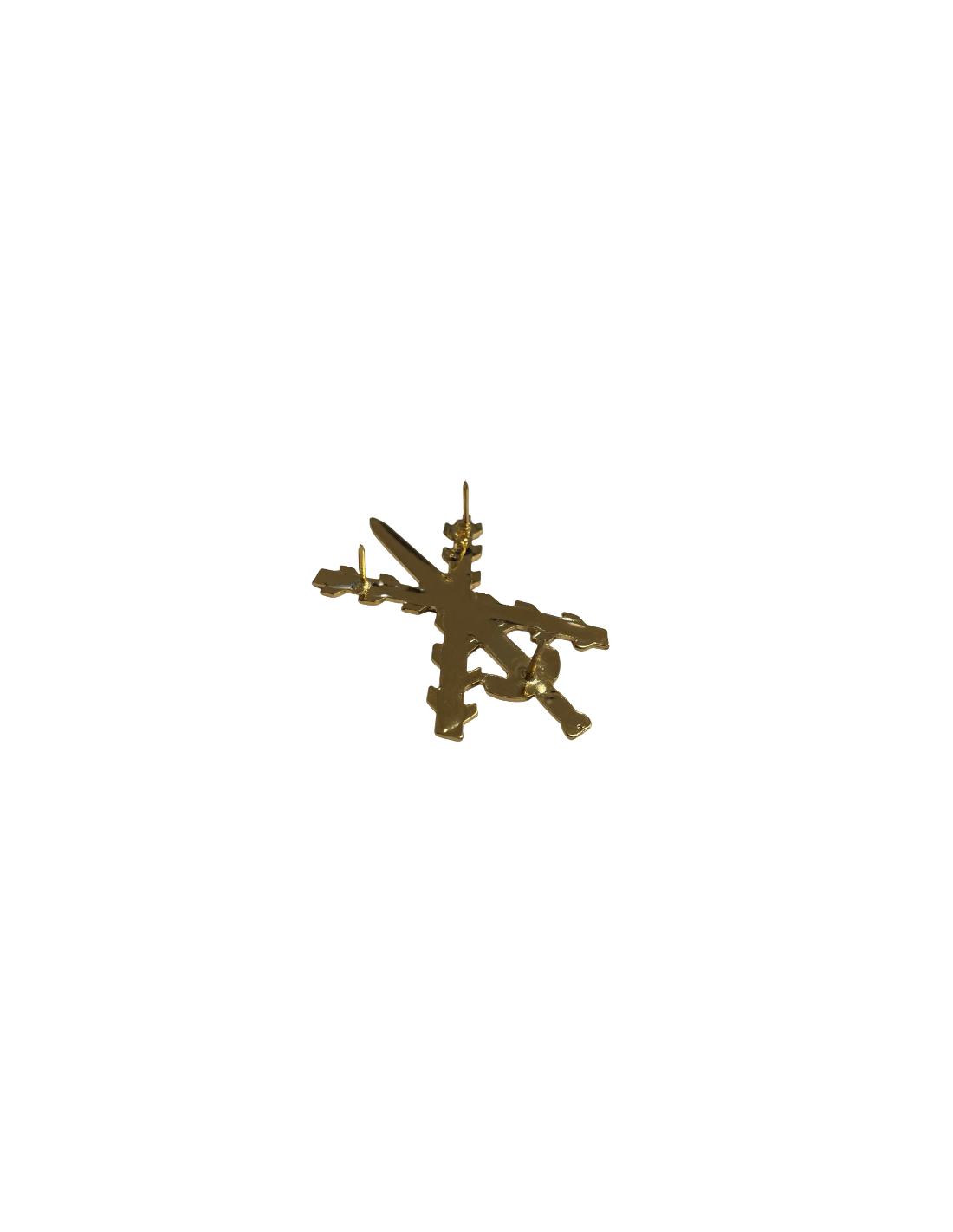 DESCRIPCIÓN. Aspa de Borgoña de oro, resaltada espada alta de plata guarnecida en oro.